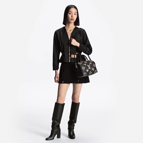 Speedy Bandoulière 25 handbag yang berukuran kecil ini tampil dalam bahan Monogram Empreinte leather berwarna hitam dan berhiaskan emboss corak Oversized Monogram bernuansa beige. Desainnya yang elegan terinspirasi dari tas "Express" kreasi Rumah Mode pada tahun 1930. Tas ini dilengkapi hardware berwarna emas serta lining bernuansa merah di bagian dalam. Handle bagian atas serta tali yang dapat disesuaikan dan dilepas memberikan berbagai opsi pemakaian.