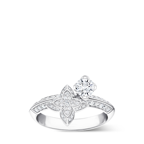 路易威登的鑽石戒指採用 18K 黃金、白金、玫瑰金或鉑金鑄造,鑲嵌高品質天然鑽石。從簡約線戒、V 字元素到精緻密鑲設計一應俱全,設計獨特並融入品牌標誌。如 Empreinte 鑽戒飾有經典 LV Initials 及傳統行李箱鉚釘;Ombre Blossom 鑽戒則運用鏤空設計勾勒 Monogram 星形花卉圖案,別具標誌性風格。