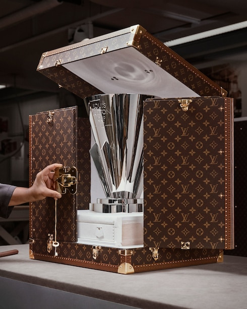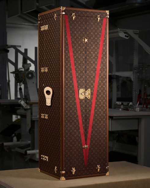 從標誌性的Monogram圖案以至象徵「勝利」和「路易威登」的手繪藍色和紅色線條,獎盃行李箱以精湛的手製工藝匠心製造,呼應品牌與運動賽事的歷史。