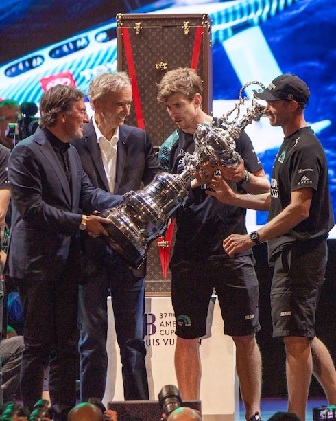 恭喜來自紐西蘭的 Emirates 船隊勝出於巴塞隆拿舉行的路易威登第37屆美洲盃。LVMH 主席兼行政總裁 Bernard Arnault 與路易威登主席兼行政總裁 Pietro Beccari 向得獎隊伍頒發 Auld Mug 冠軍獎盃,以表揚團隊成員的卓越成就和對帆船運動的重大貢獻。