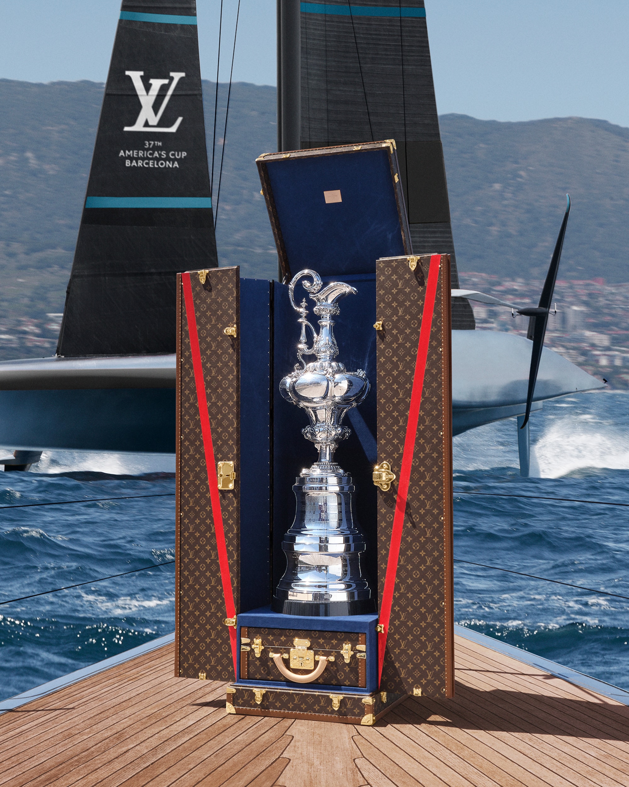 路易威登欣然宣布再度成為第37屆美洲盃的冠名合作夥伴,為這趟傳奇之旅譜寫新篇章。今年,路易威登特別訂製兩個獎盃行李箱,第一階段賽事的路易威登盃行李箱採用精美的米白色布面襯裡,還有頒發予優勝隊伍阿聯酋航空紐西蘭隊的Auld Mug冠軍獎盃行李箱。獎盃行李箱以路易威登的經典Monogram帆布製造,並添上象徵「勝利」和「路易威登」的V字,將精湛工藝與悠久傳統完美結合。