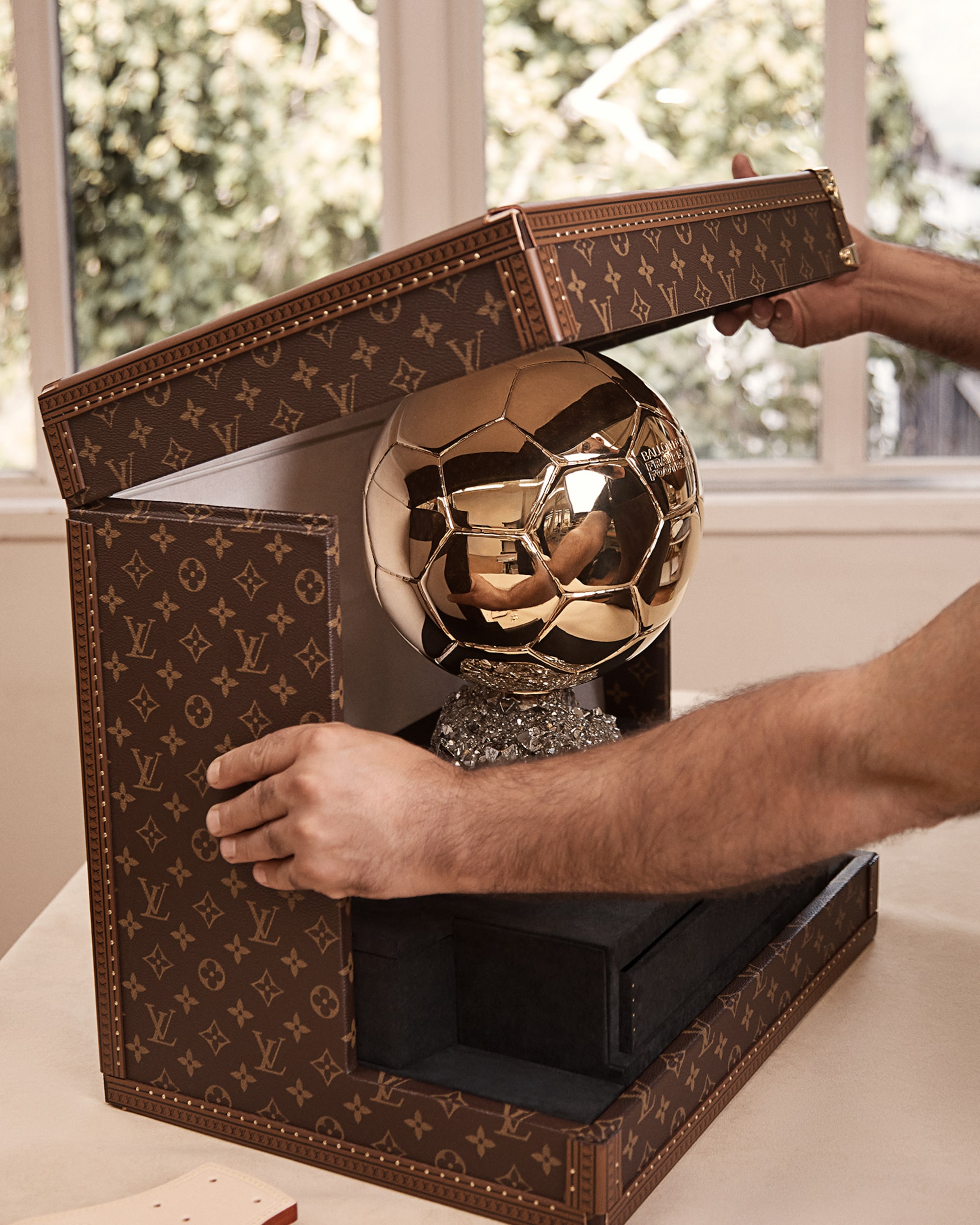 作為金球獎™的官方獎盃行李箱合作夥伴,路易威登特別製作兩個獎盃行李箱,盛載頒發予最佳男女足球運動員的金球獎獎盃。獎盃行李箱於2025年9月22日第69屆金球獎頒獎典禮上亮相,融入路易威登的經典設計元素,Monogram帆布添上代表「勝利」和「路易威登」的金色V字,與金光閃閃的金球獎™互相輝映。