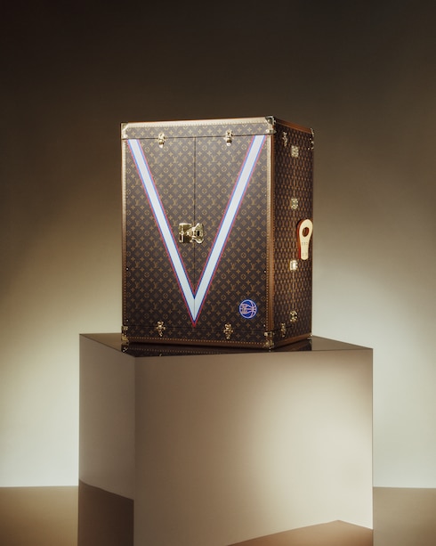 路易威登以特製行李箱盛載頒發予 NBA 冠軍球隊的「奧布賴恩獎盃」。路易威登與美國國家籃球總會(NBA)於 2020 年展開全球合作,使品牌成為首家官方獎盃行李箱供應商,也為路易威登特製行李箱的悠久歷史再添新篇章。獎盃行李箱舖上品牌經典 Monogram 帆布,白色 V 形圖案以藍色和紅色細節點綴,而箱內亦採用 NBA 的官方深藍色襯裡。