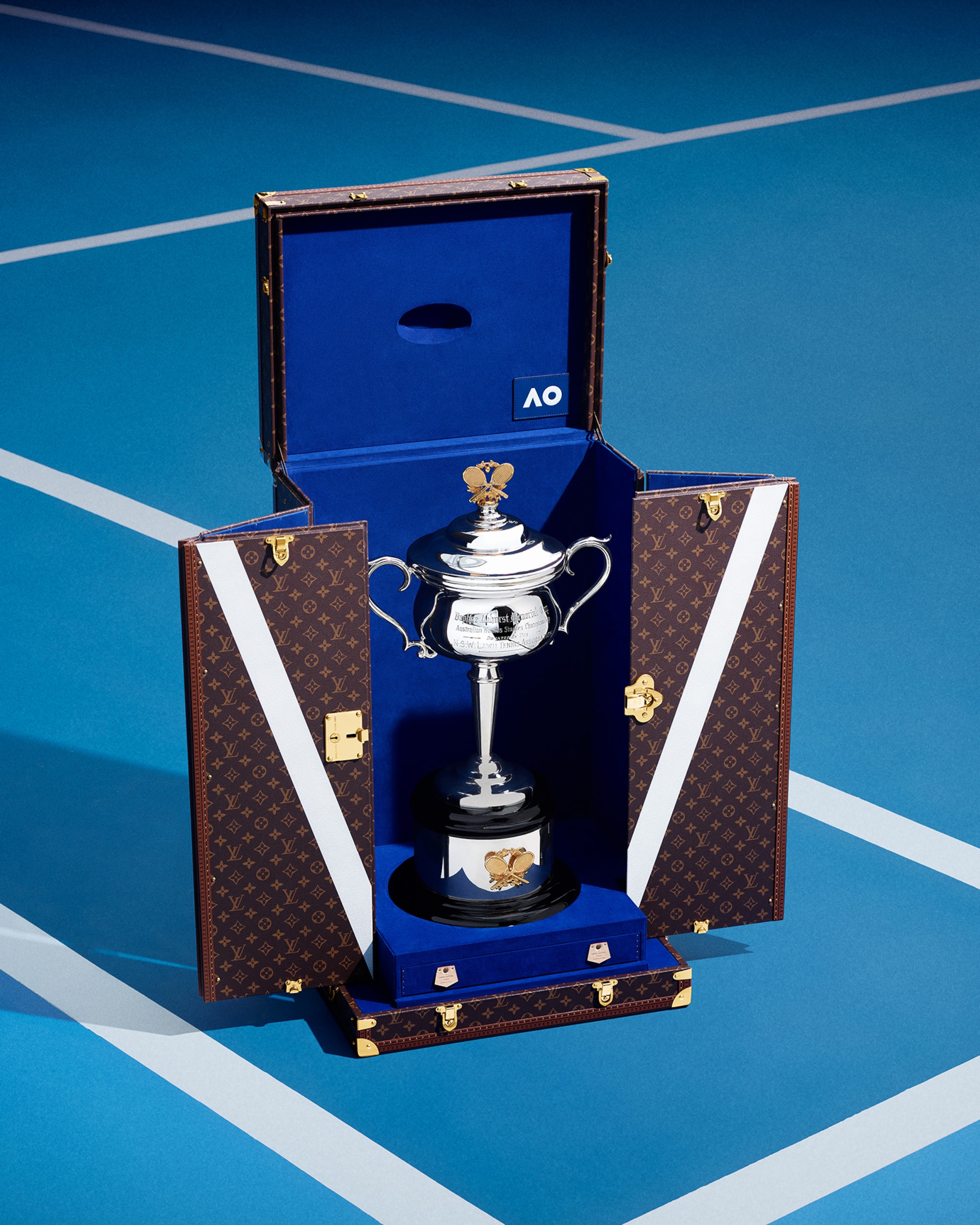 路易威登第二度與澳洲網球公開賽攜手,成為2025年賽事的官方獎盃行李箱合作夥伴,為女單冠軍獎盃達芙妮‧阿克赫斯特紀念盃 (Daphne Akhurst Memorial Cup) 及男單冠軍奬盃諾曼布魯克斯挑戰盃 (Norman Brookes Challenge Cup) 特別製作兩個 Monogram 獎盃行李箱,展示品牌多年來對網球運動的支持。兩個特製獎盃行李箱將會在決賽及頒獎典禮上亮相,箱內的藍色微纖維襯裡與賽事的主題顏色完美呼應,箱蓋內側亦以代表澳洲網球公開賽的白色 AO標誌點綴。