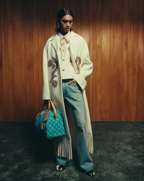 從西部牛仔取材的造型和工作服細節,創意結合路易威登的傳統特色,呼應美國西部服飾的經典圖案和造型。融入獨特裝飾和高級物料的特色袋款和配飾,也散發西部獨有的風格元素。