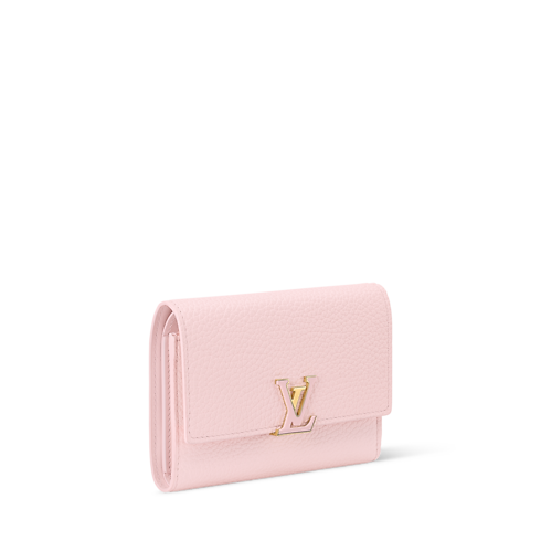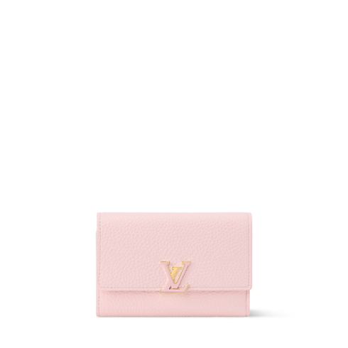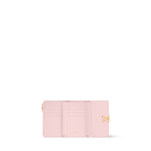 這款Why Knot系列的Capucines短錢包於今季以Sweet粉紅色演繹全新版本,展現時尚的現代風格。典雅的配飾採用Taurillon皮革製造,配上牛皮襯裡,設有多個口袋及卡片夾層,妥善保存貴重物品。金色LV標誌按扣為錢包注入雋永精緻的格調。