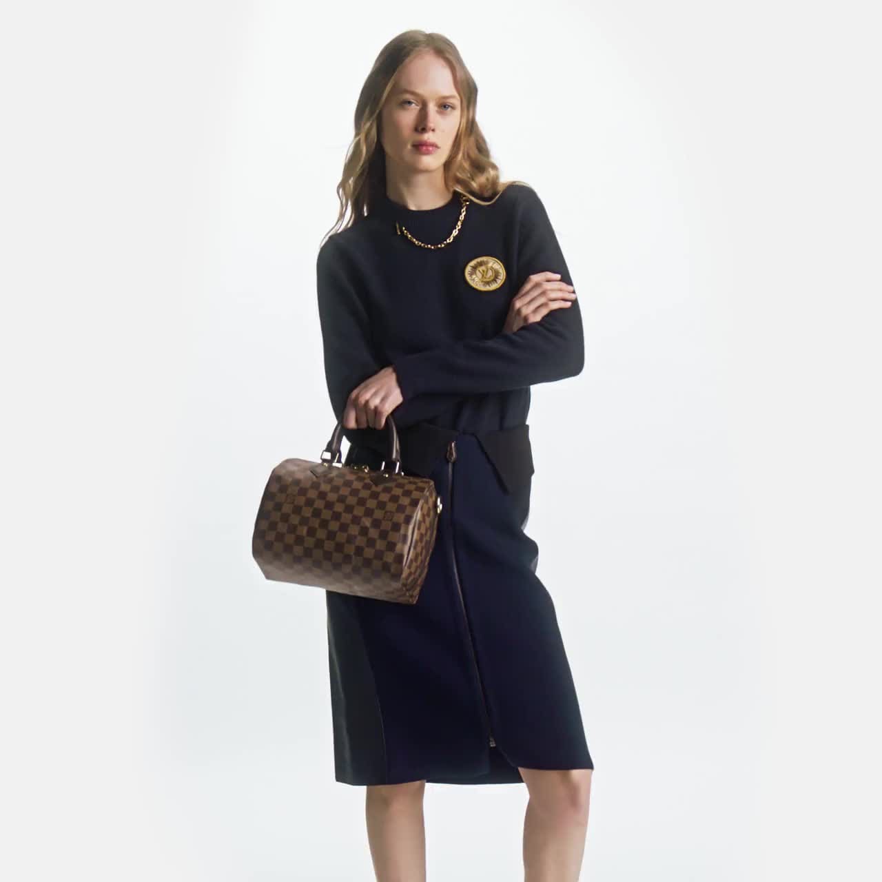 這款套頭毛衣以舒適從容的山羊絨針織面料縫製,打造優雅日常造型,是路易威登的必備款式。毛衣一邊肩位綴以品牌精緻的拉鏈及鏈帶細節,可拉開穿搭展現現代風格,加上LV標誌刺繡貼章,更顯時尚格調。