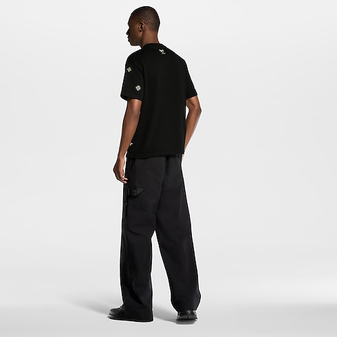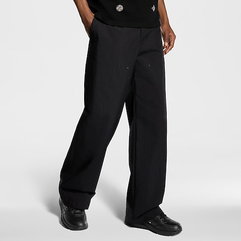 這款黑色工裝風長褲採用功能性防撕裂棉質面料裁製,質感輕盈透氣,特別適合都市的夏日造型。長褲配有功能實用的細節,如膝上口袋飾以低調的Monogram花卉圖案鉚釘,背面的左側口褲配有Monogram圖案羅緞錘紋圈環,可搭配同系列的套裝單排扣外套,締造現代時尚的套裝造型。