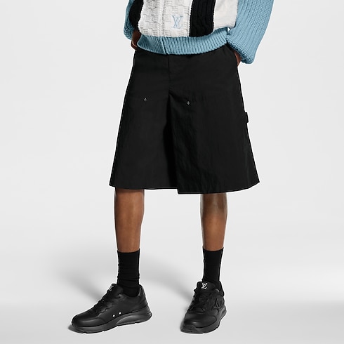 這款黑色工裝風短褲採用功能性防撕裂棉質面料裁製,質感輕盈透氣,締造休閒舒適的夏日造型。短褲配有功能實用的細節,如膝上口袋飾以低調的Monogram花卉圖案鉚釘,背面的左側口褲配有Monogram圖案羅緞錘紋圈環,可搭配同系列的其他黑色單品,締造現代時尚的都市造型。