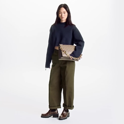 這款Coussin MM包包是2021秋冬系列最出眾的包款,選用Monogram壓花圖案的蓬鬆小羊皮打造,尺寸寬敞,觸感猶如枕頭般柔軟。設計備有可調節長度的紡織肩帶,肩背及斜背攜帶皆宜,也可搭配全新Edge鏈帶,以時尚方式將包包夾於臂間攜帶。