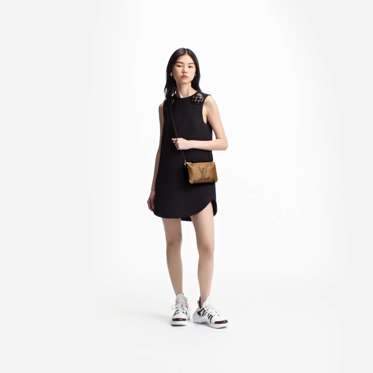 這款Double Zip Pochette完美揉合經典Monogram和時尚Monogram Giant Reverse帆布,設有可拆式及可調節長度皮革肩帶,提供多個攜帶方式,用途靈活多變,配備兩個可裝載日常隨身物的拉鍊口袋,其中一個配有三個卡片夾層,而中間隔層則方便取放票據等物件。