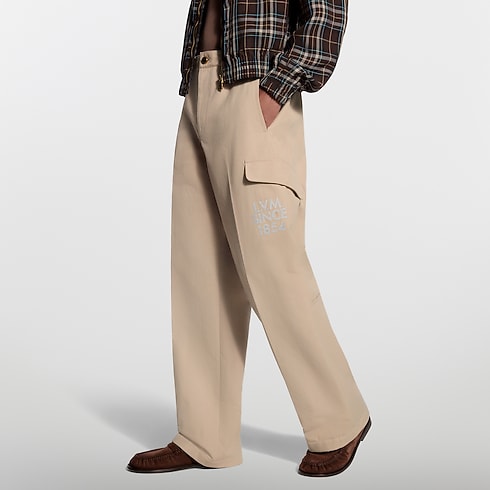 這款工裝風長褲是雋永的衣櫥必備,為日常造型增添完美點綴。長褲以有機棉質精心製作,柔和充滿質感的經典Beige色織紋面料,後腰設有彈性設計,穿著更舒適自如。左褲腿綴以2026春夏系列的白色LV Alphabet刺繡標誌,為整體造型添上獨特飾面。