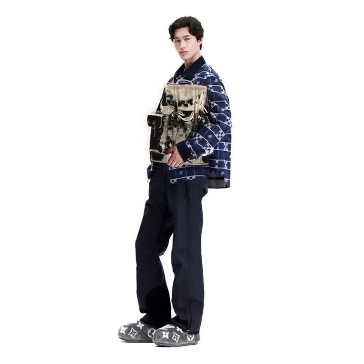 這款柔軟的棉質法蘭絨襯衫非常適合在壁爐旁度過悠閒夜晚。襯衫飾有Navy色調提花格紋,融合結合Damier圖案,配上燈芯絨衣領及袖口彰顯鮮明質感,而VVN彩色皮革標誌貼章和衣領上的LV刺繡則點綴考究俐落的細節。這款幾何風設計亦可作襯衫外套穿搭。