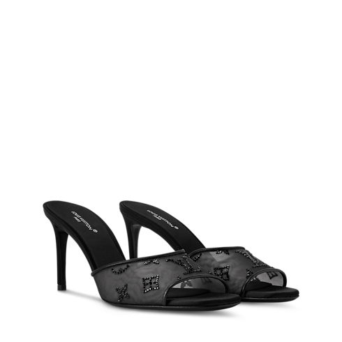 這款路易威登Bridal系列的Gala涼鞋以半透明網布重新演繹,鑲飾閃爍迷人的萊因石,精心勾勒出Monogram圖案。經典柔美的設計配有寬闊的弧面前搭帶及纖巧細高跟,皮革鞋底還飾有LV Initials標誌配飾。