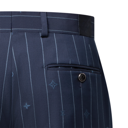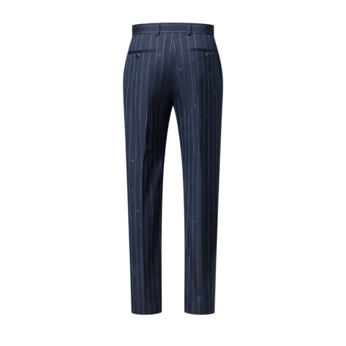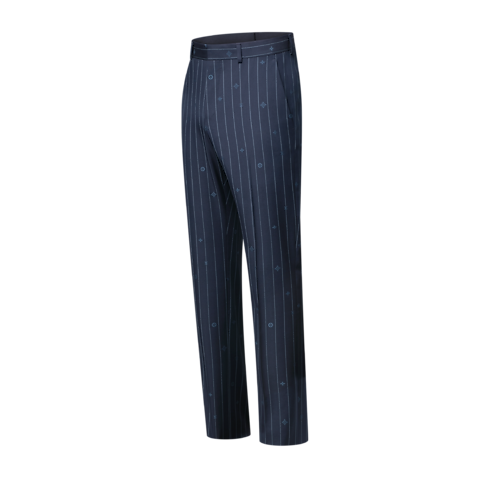 這款Navy藍色窄腳長褲以玩味風格展現西裝剪裁的元素。設計將經典的幼條紋圖案重塑成同色調Monogram Pinstripes提花圖案,並將Monogram元素融入條紋之間。這款修身長褲採用細緻的羊毛面料縫製,可與同系列的套裝外套締造精緻的商務西裝造型。