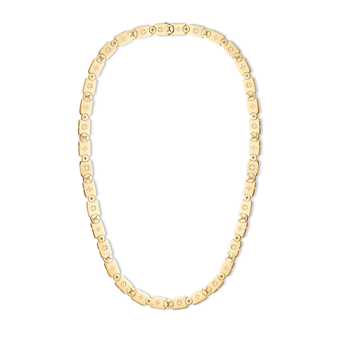 這款Les Gastons Vuitton高級珠寶系列的Gourmette項鍊格調現代創新,金色項鍊採用鐳射切割而成,並綴有Monogram鐫刻圖案,設計新穎獨特,向路易威登孫子Gaston-Louis Vuitton追求奢華品質和顧家的個性致敬。這款奪目迷人的項鍊造工精湛非凡,可輕鬆搭配系列的其他珠寶款式。
