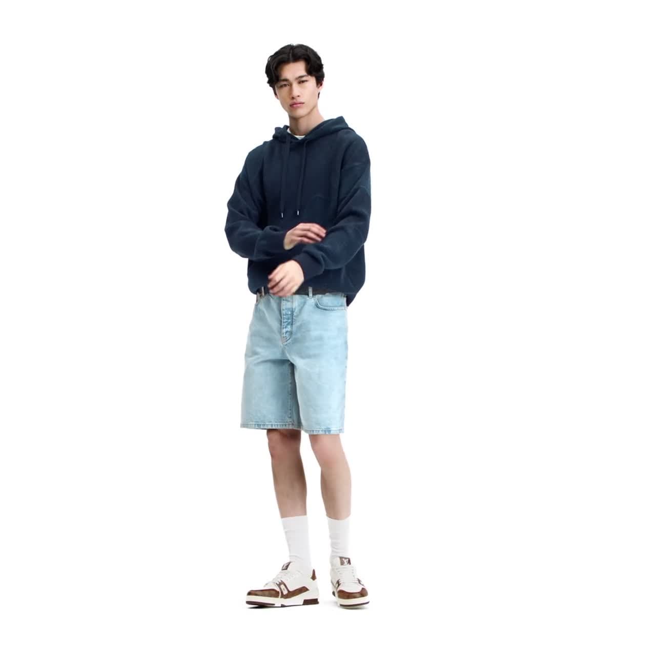 這款休閒藍色連帽外套靈感來自2025春夏時裝展的探險主題,同色調Monogram圖案與絲絨般的橫間條紋相遇,呼應2025春夏時裝展中的植絨設計。這件質感豐富、觸感細膩的單品為日常造型增添低調的時尚標誌點綴,亦可輕鬆配搭本季的藍色造型。