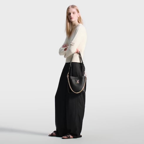 型格的 Lock and Walk 托特包以粒面小牛皮製作,輕盈水桶廓形令攜帶時更感舒適,將休閒風格與巴黎時尚完美結合。精品托特包正面的大型隔層配以穩妥的LV轉鎖,方便取放重要的隨身物品。這款托特包更設有可拆式多功能肩帶和金色鏈帶,可作多種方式攜帶。