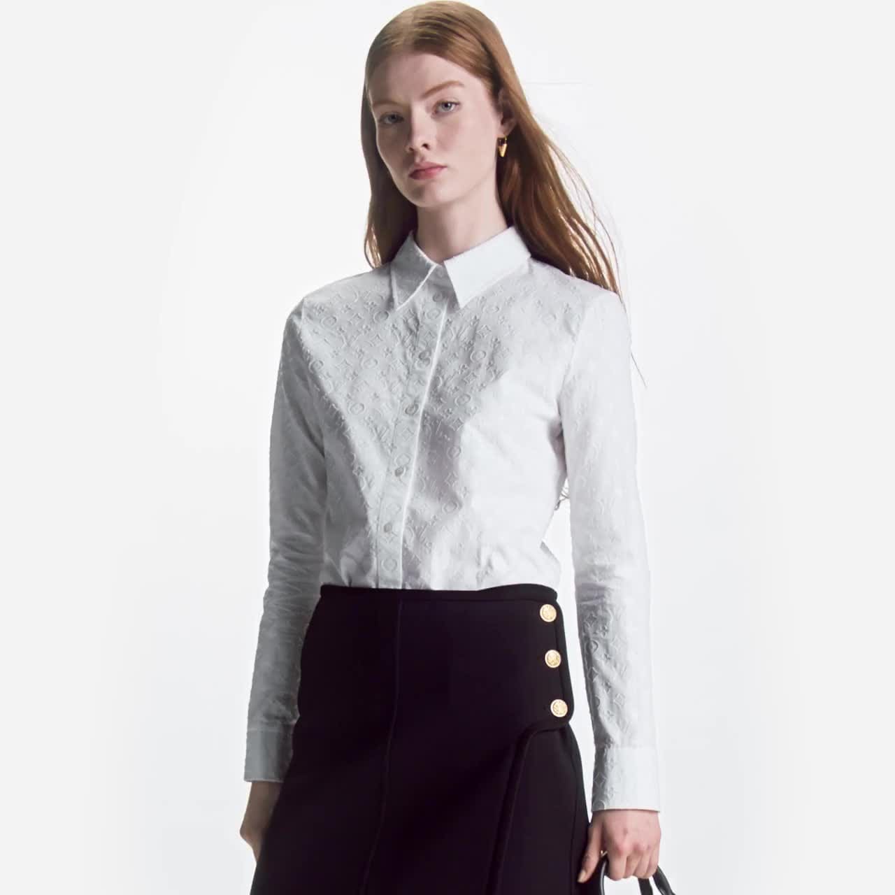 這款長袖修身襯衫以經典版型剪裁,是現代女性的必備款式。設計採用柔軟綿質府綢所製,飾以優雅的Monogram獨立刺繡圖案。衣袖綴以Monogram花卉圖案飾片,増添經典魅力。