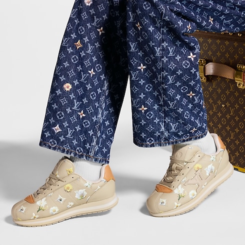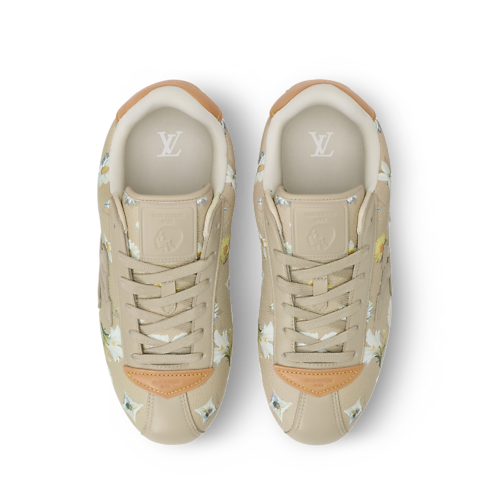 這款LV Buttersoft運動鞋以羊皮及小牛皮巧妙拼接,並印有本季主打的Blooming Monogram圖案。此鞋款由男裝創意總監Pharrell Williams設計,向1960年代致敬,而此年代正是運動鞋首次由運動領域跨足時尚界的時期。鞋面柔軟且加有厚墊,配以天然皮革飾邊,並綴以LV Initials標誌,盡顯奢華格調。