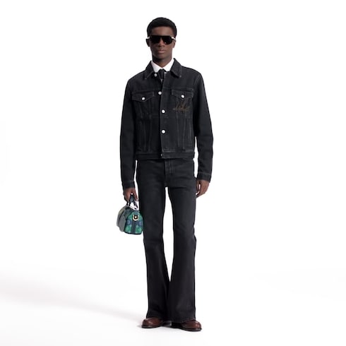 這款喇叭牛仔褲以高級日本牛仔布精心製作,為衣櫃的必備服裝,展現路易威登的精湛工藝。設計採用經典的黑色洗水工藝及前衛廓形,可輕易搭配各種造型,搭配獨特細節,包括後袋的Tobacco色明線刺繡的LV標誌及票據口袋和褲腰上的磨砂皮革標誌貼章。