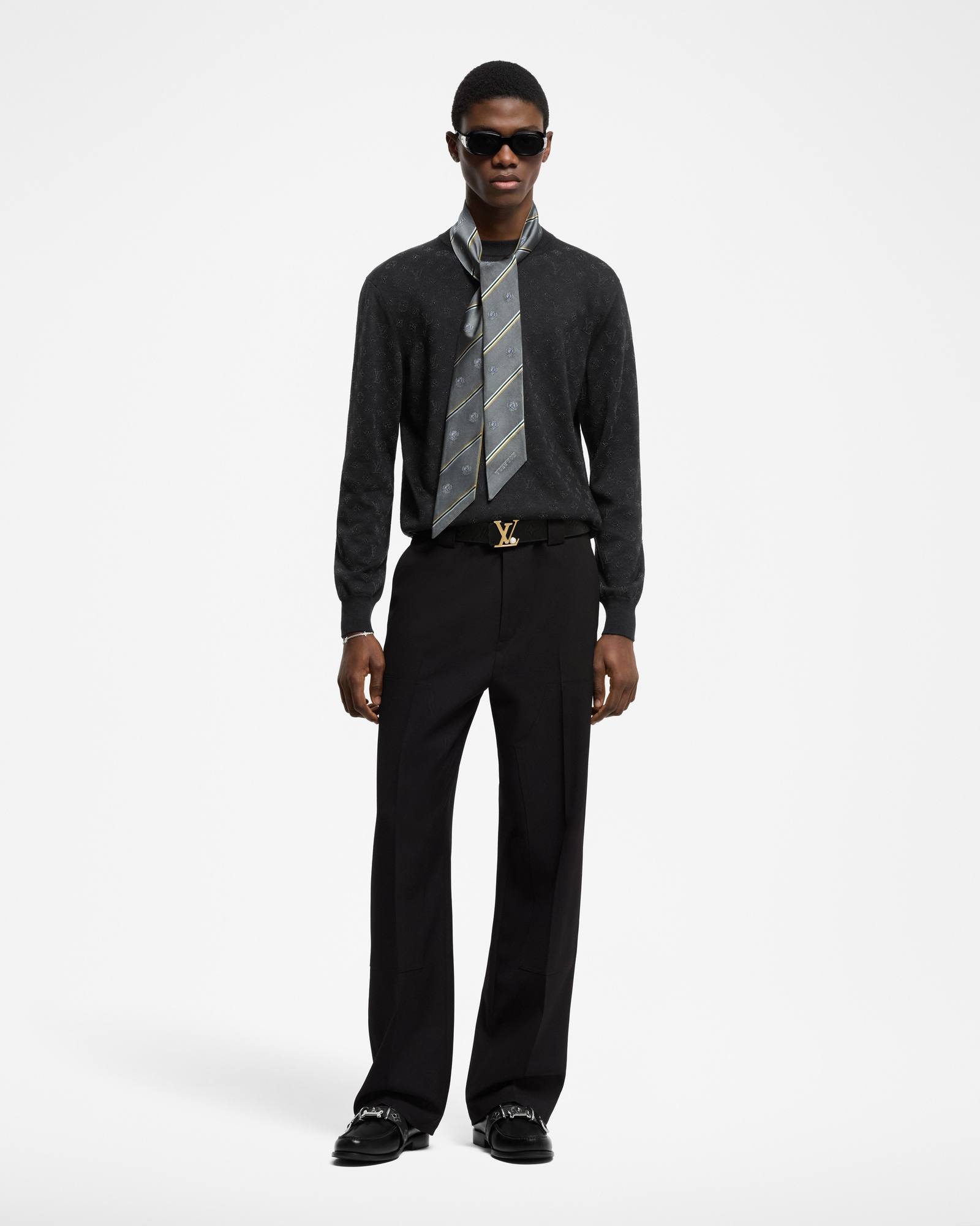 這款LV Initiales Pearls 40毫米雙面皮帶印證永恆的簡約典雅格調。皮帶一面綴有Monogram壓花圖案,而另一面則採用精緻的滑面皮革,雙面均以黑色設計。金色LV Initiales標誌皮帶搭扣飾有Monogram花卉鐫刻圖案的單顆珍珠,而皮帶更以平坦的末端,彰顯精緻的設計格調。