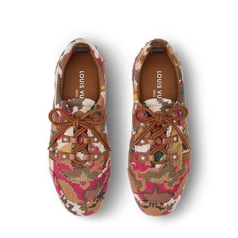 這款LV Sneakerina芭蕾風運動鞋於2026年春夏系列時裝展上登場,以花氈面料製造全新版本,靈感源自東方地毯與十九世紀法式刺繡工藝。復古造型的花卉圖案再現品牌的Monogram花卉圖案,鞋側以小牛皮點綴LV標誌,配上柔軟的橡膠鞋底。