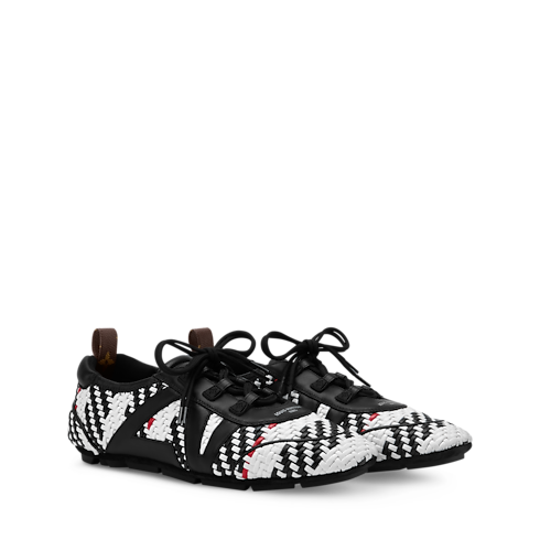女裝藝術總監Nicolas Ghesquière於路易威登2026年春夏系列時裝展上重新演繹LV Sneakerina芭蕾風運動鞋,完美彰顯精湛非凡的品牌工藝。全新版本以精緻的編織小羊皮製造,鞋側飾以皮革LV標誌,配上橡膠鞋底及Monogram帆布後跟拉環。