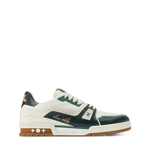 這款精緻的LV Trainer運動鞋結合粒面與仿舊小牛皮製造,完美融合復古風格的物料與現代設計。標誌性鞋款從經典籃球運動鞋取得靈感,以結構精巧的鞋面著稱,綴有多個品牌標誌元素,功能性橡膠鞋底還飾有Monogram花卉圖案。
