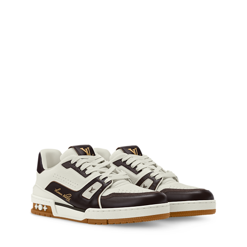 這款精緻的LV Trainer運動鞋結合粒面與仿舊小牛皮製造,完美融合復古風格的物料與現代設計。標誌性鞋款從經典籃球運動鞋取得靈感,以結構精巧的鞋面著稱,綴有多個品牌標誌元素,功能性橡膠鞋底還飾有Monogram花卉圖案。