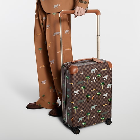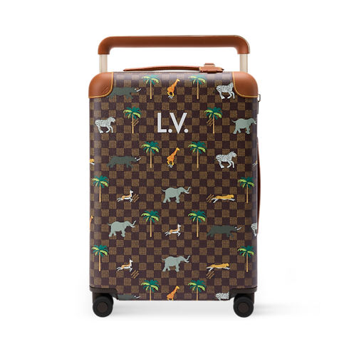 這款V x The Darjeeling Limited 系列的Horizon 55拉桿行李箱以Damier Ebene Heritage帆布製成,並飾有非洲大草原野生動物的插畫圖案。棕色皮革飾邊綴於加固護角及拉桿手柄,巧妙突顯深色調設計。行李箱更以機艙行李尺寸打造,內部空間寬敞,格外實用。