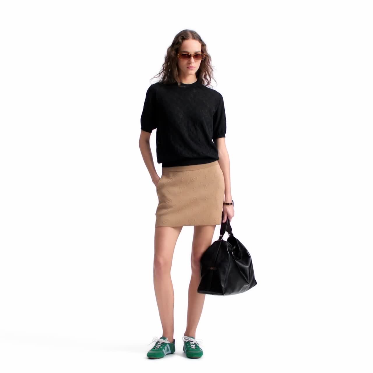 這款針織上衣以優質羊毛混紡針織製造,綴有Flight Mode系列的精緻鏤空Mahina Monogram標誌,下襬配以俐落羅紋,輕易展現時尚魅力。修身剪裁與泡泡短袖的蓬鬆感互相烘托,營造出柔美飾面。