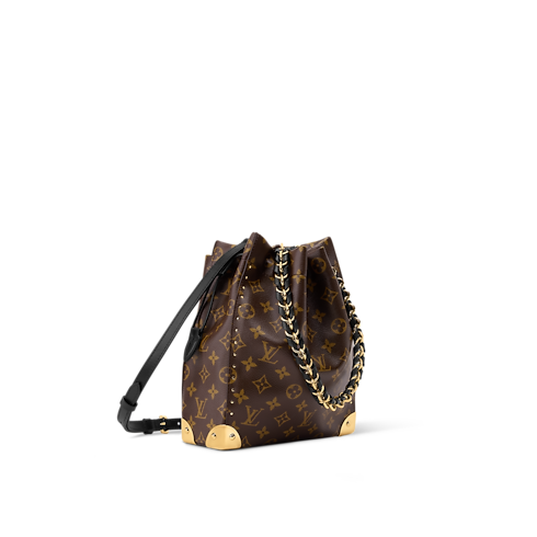 這款Noé Trunk以典雅的水桶包造型登場,將經典魅力與現代時尚風格融為一體。包包採用Monogram帆布製造,綴以精緻的金色金屬件,以硬箱風格的護角向品牌經典旅遊傳統致敬。包款配備可拆式編織鏈條,採用抽繩設計,能妥善收納貴重物品。