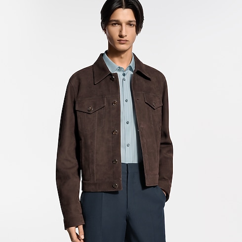 這款深啡色牛仔外套採用絲絨般柔順的磨砂小牛皮製作,更顯格調。柔軟的雙面皮革帶來輕盈結構,令外套成為轉季的百搭層次之選。扣位飾有綴以低調鐫刻Monogram花卉圖案的牛角鈕扣,而衣領背面飾以VVN皮革飾片,致敬品牌悠久的皮革精品傳統。
