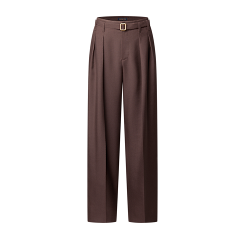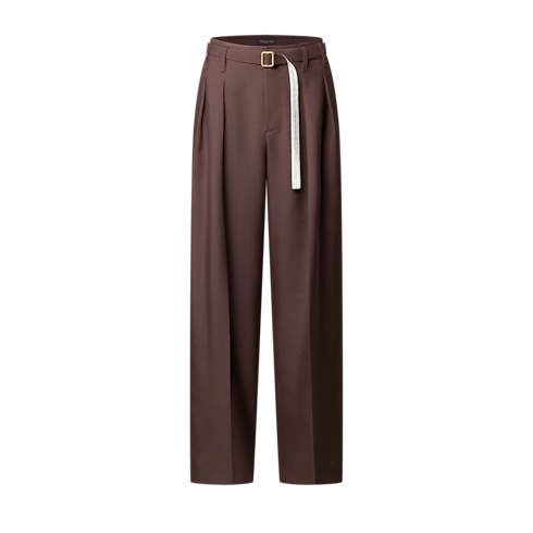 這款腰帶長褲以優質馬海毛西裝布料精製,飽和的棕色調展現出2026年春夏時裝秀的隨性優雅。正面的褶襉勾勒出流麗線條,標誌性刺繡點綴於後方口袋,盡顯細緻匠心,成就本季雋永造型的必備單品。