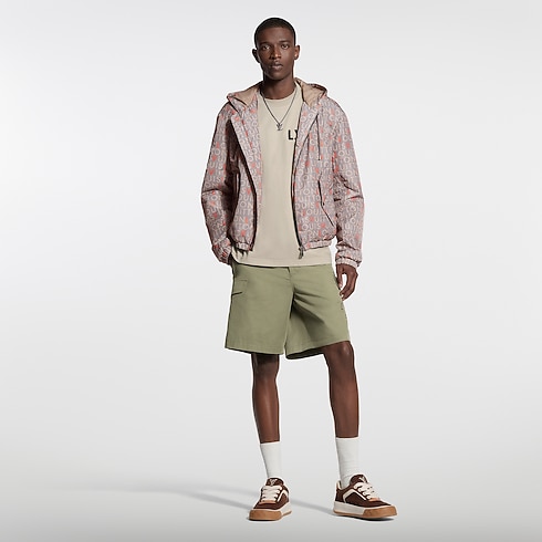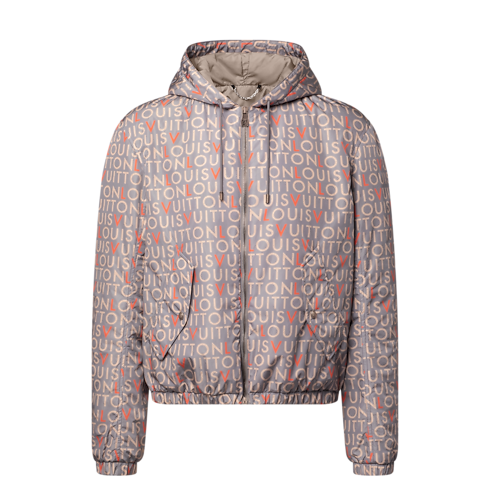 這款功能性風褸綴以2026春夏時裝秀的幾何風LV Maze圖案,靈感源自印度廣告牌上人手繪製的字母。設計以優雅的灰色的Louis Vuitton標誌,並以亮麗紅色點綴L與V字母。輕巧的鋪棉層次設計巧妙融合實用與時尚,為造型增添現代經典的標誌性點綴。
