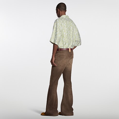 這款飄逸流麗的襯衫以有機絲質面料裁製,綴以2026春夏系列時裝秀的LV Maze印花圖案。幾何風的綠色及藍色Louis Vuitton標誌從手繪廣告牌取得靈感,靈感源自今季的印度之旅主題,在奶白色背景上演繹現代的時尚風格。襯衫可搭配同系列的套裝短褲,締造休閒的奢華套裝造型。