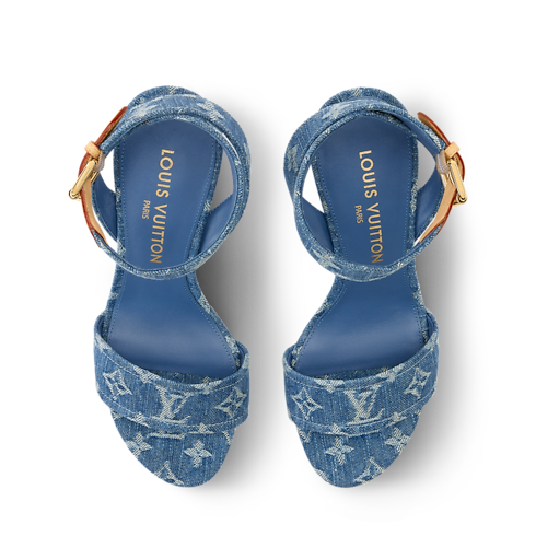 這款Silhouette涼鞋以Monogram牛仔布製造,演繹時尚的夏日造型。足踝搭帶點綴標誌性天然皮革飾邊,飾以黃色明線細節及金色搭扣,向路易威登皮革精品致敬。鞋款配上Silhouette系列獨特的Monogram花卉圖案形狀鞋跟,完美展現精緻的品牌風格。