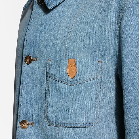 這款低調奢華的工裝風外套採用頂級日本工坊出品的棉質絲質斜紋布精製而成,重新演繹牛仔布風格。柔和剪裁廓形綴以挑縫縫線,襟前口袋飾有VVN皮革標誌性飾片,而頂部鈕扣鑲嵌LV縫線。設計配上充滿春日氣舐的淡雅水洗Indigo色調,可搭配同系列的套裝長褲,締造現代套裝造型。