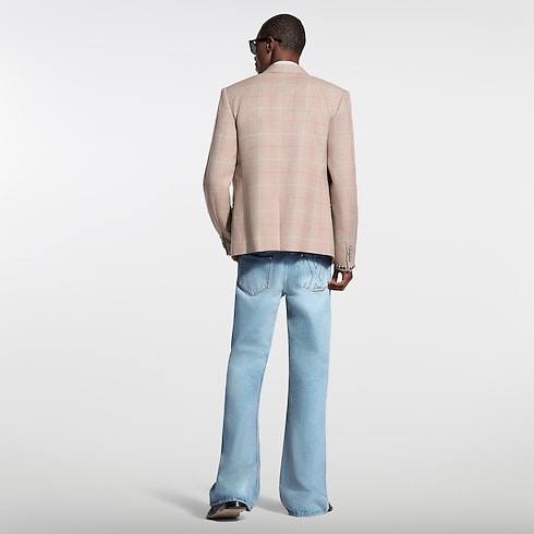 這款2026春夏時裝秀單排扣羊毛外套,完美演繹本季印度時尚考究美學,以典雅駝色千鳥格面料剪裁而成。翻蓋口袋與袖口飾以猶如珠寶般的珠繡細節,左側口袋則低調點綴Louis Vuitton Paris標誌刺繡。搭配同款長褲,為傳統西裝造型注入別緻格調。