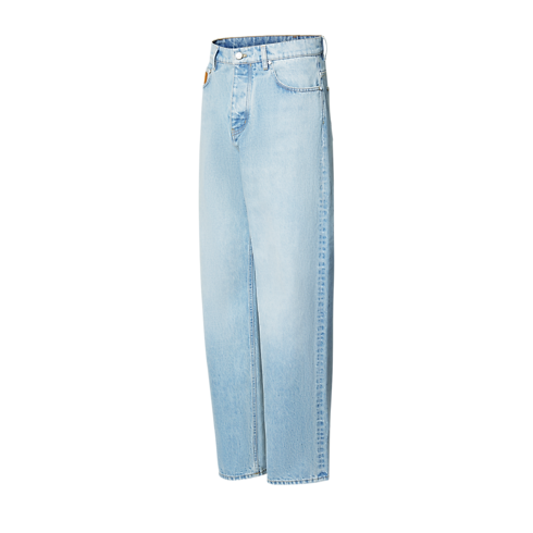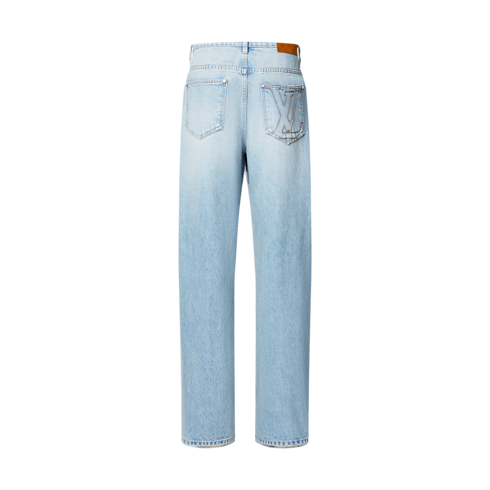 這款溜冰服版型牛仔褲採用高級日本風牛仔布裁製,以路易威登精湛工藝打造衣櫥必備款式。牛仔褲經洗水工藝處理呈現雋永淺藍色,搭配休閒廓形設計,可輕鬆締造任何造型。此外,牛仔褲更飾有多個獨特細節,包括Tobacco色明線、背面口袋的LV刺繡標誌、票袋及腰位的磨砂皮革標誌貼章。