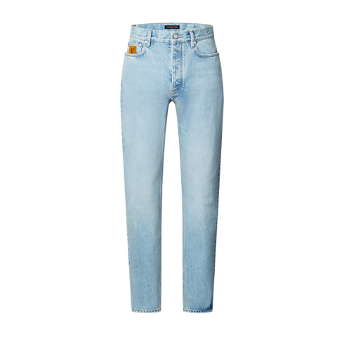 這款修身版型牛仔褲採用高級日本風牛仔布製成,並以路易威登精湛工藝打造衣櫥必備款式。牛仔褲經洗水工藝處理呈現雋永淺藍色,搭配易襯廓形設計,可輕鬆締造任何造型。牛仔褲更飾有多個獨特細節,包括Tobacco色明線、背面口袋的LV刺繡標誌、票袋及腰位的磨砂皮革標誌貼章。