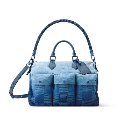 這款Speedy Outdoor Bandoulière 40採用Damier Pigment牛仔布製作,提花經細繳的漂白及再染色處理,營造出獨特漸變效果。包款的三個正面口袋配以按扣飾釘,並設有雙頂端手柄、額外較長手柄,以及可調節長度的可拆式肩帶,可作多種方式攜帶。