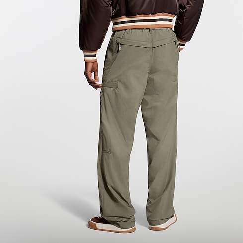 這款Khaki色工裝風長褲彰顯2026年春夏系列時裝秀的時尚登山主題,選用功能性皺褶面料,並配備多個口袋。舒適的背面彈性褲腰設計配有內置抽繩,以便調節鬆緊,左邊褲管繡以L.V.M. Legacy標誌,演繹雋永而實用的風格,完美搭配日常造型。