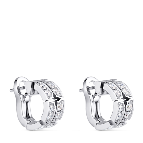 這款Tumbler耳環取材自品牌硬箱製作傳統,展現雋永的高級珠寶美學,向經典路易威登標誌致敬。造工精湛的白K金環狀耳環綴有完全對稱的鏤空Monogram花卉圖案,並綴以閃爍鑽石。這款珍貴耳環可完美捕捉和反射光線,散發璀璨的優雅氣質。
