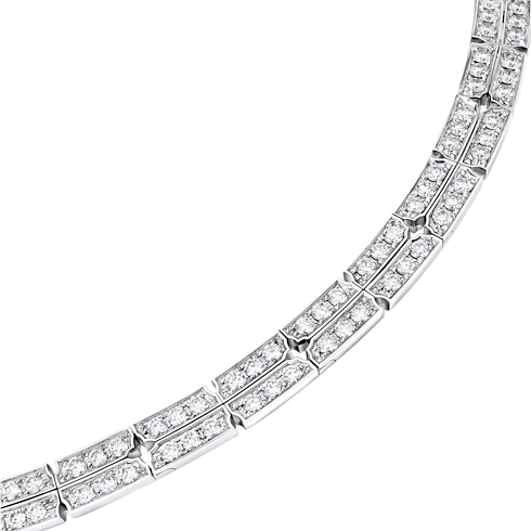 這款Tumbler項鍊以鮮明俐落的幾何風線條設計,締造雋永經典的中性風格,盡顯路易威登的精湛工藝。精巧的設計呈現鏤空Monogram花卉圖案形狀,在白K金鏈環之間點綴低調別緻的品牌標誌細節,而柔軟的鏈節讓佩戴時更加貼合。項鍊鑲滿鑽石,每一縷光芒閃爍生輝,交織成耀眼的熠熠星光。