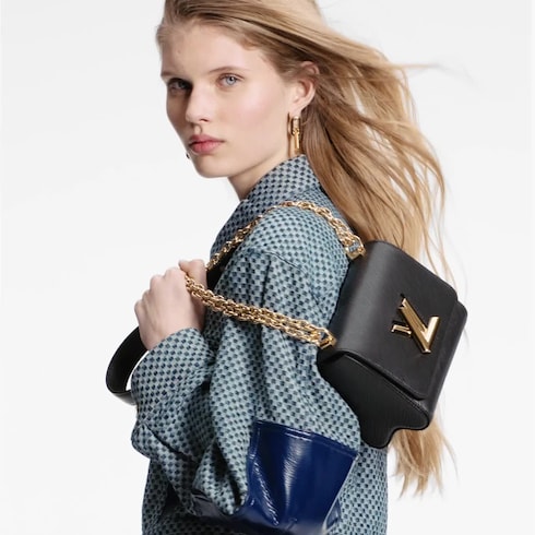 這款Twist MM鏈帶包款以品牌經典的Epi皮革製造,採用全新的標誌性LV轉鎖,閃亮的金色金屬標誌帶來精雕細琢的細節。手工精美的包款底部採用巧妙的「波浪型」設計,令容量格外寬敞,日夜場合攜帶皆宜。滑動式鏈帶肩帶可重疊作肩背攜帶,亦可延長作斜背攜帶。這款Twist包款於2015年早春系列中首度登場,是品牌的全新經典之作。