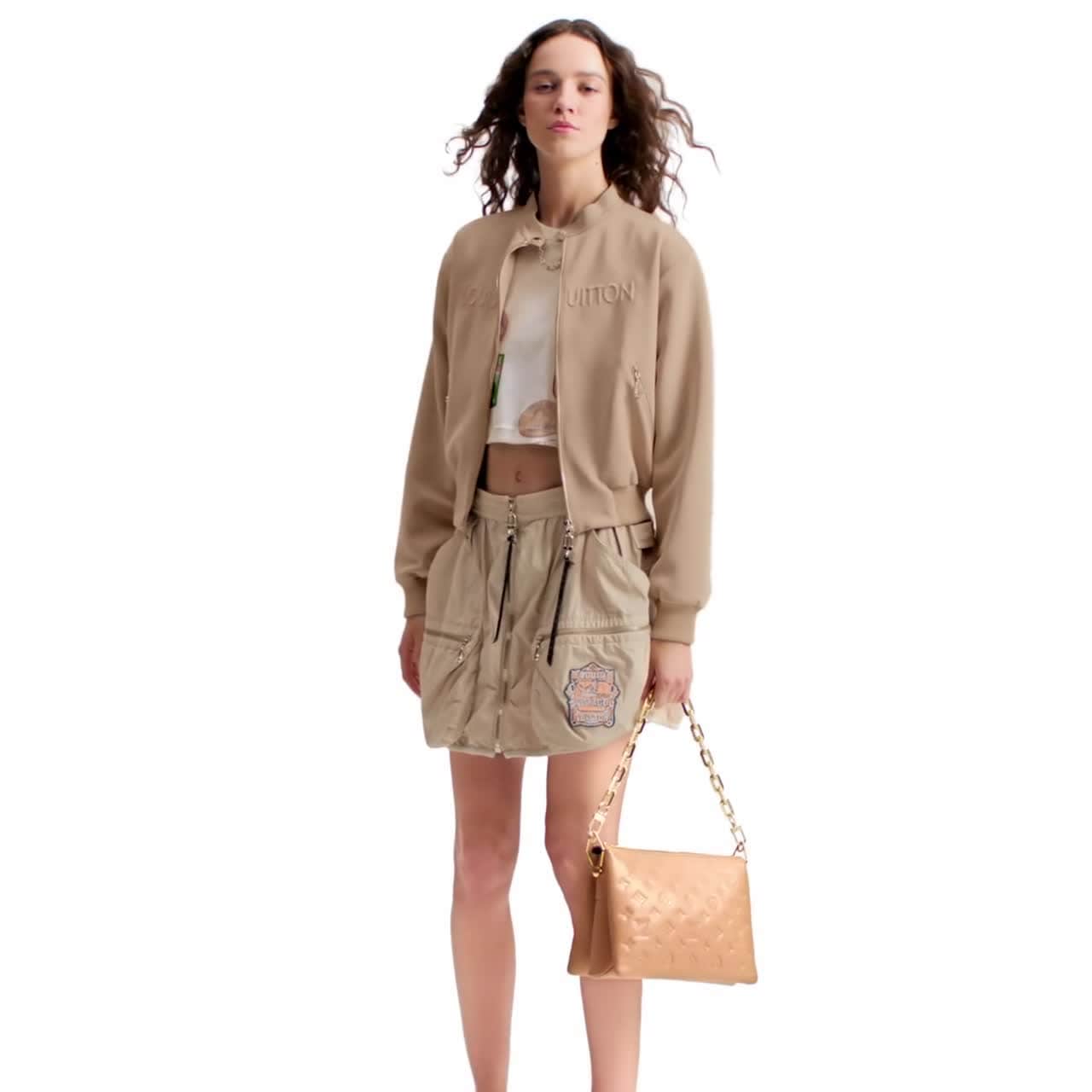 這款迷你半截裙以輕盈的桃毛絨效果棉布締造休閒A字廓形,並融合工裝風細節,彰顯時尚運動風格。正面外露拉鏈綴以Monogram帆布拉鏈頭,並搭配兩個特大拉鏈口袋,增添挺括豐盈感。鮮明的路易威登旅遊貼圖注入季節性特色,令設計更臻完美。