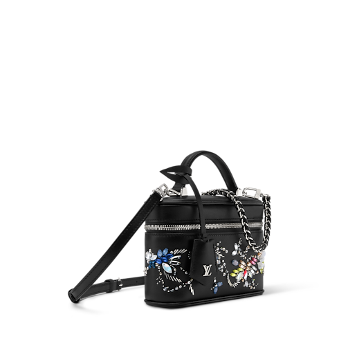 這款華麗的Vanity Chain Pouch出自Eden系列,以精緻刺繡作為設計亮點。設計選用經典黑色小牛皮精心打造,鑲嵌彩色寶石與萊因石,配以可拆式金色編織鏈條。配有皮革地址吊牌,向品牌標誌性的旅遊傳統與卓越工藝致敬。
