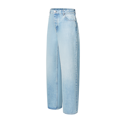 這款闊腿牛仔褲採用高級日本牛仔布裁製,並以路易威登傳統精湛工藝打造,是衣櫥必備款式。牛仔褲經洗水工藝處理呈現雋永的淺藍色,搭配個性廓形設計,可輕易配襯任何造型。褲款同時飾有多個獨特細節,包括Tobacco色明線、背面口袋的LV刺繡標誌,以及票據口袋與腰位的磨砂皮革貼章。